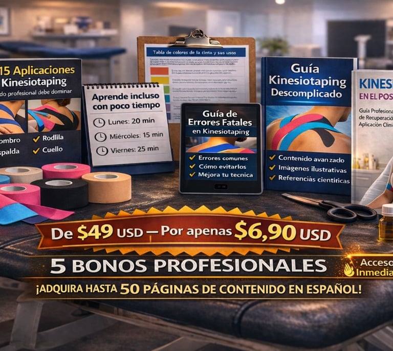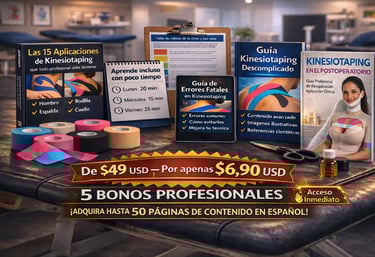 🎁 Al adquirir hoy el curso completo de Kinesiotaping, recibirás totalmente GRATIS 5 bonos exclusivos que acelerarán tu aprendizaje y transformarán tu práctica profesional: